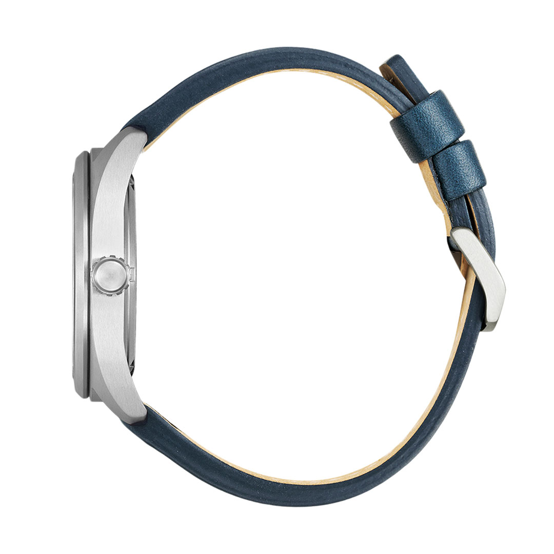 Esfera azul y correa de cuero azul